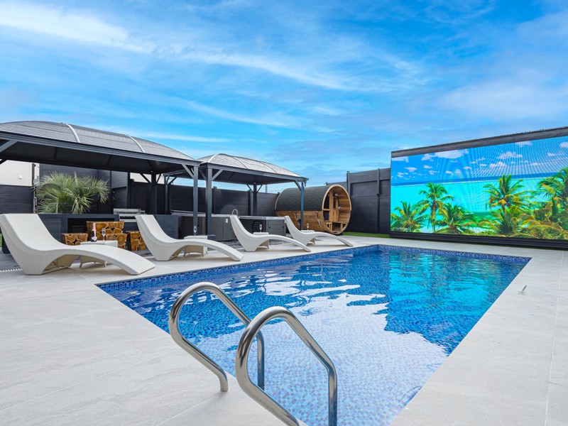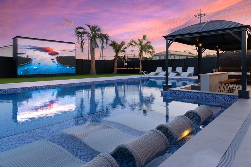 広々としたプール、BBQスペースに加え、巨大サイネージで、自然の中で映画やスポーツを楽しめる非日常性を実現します。